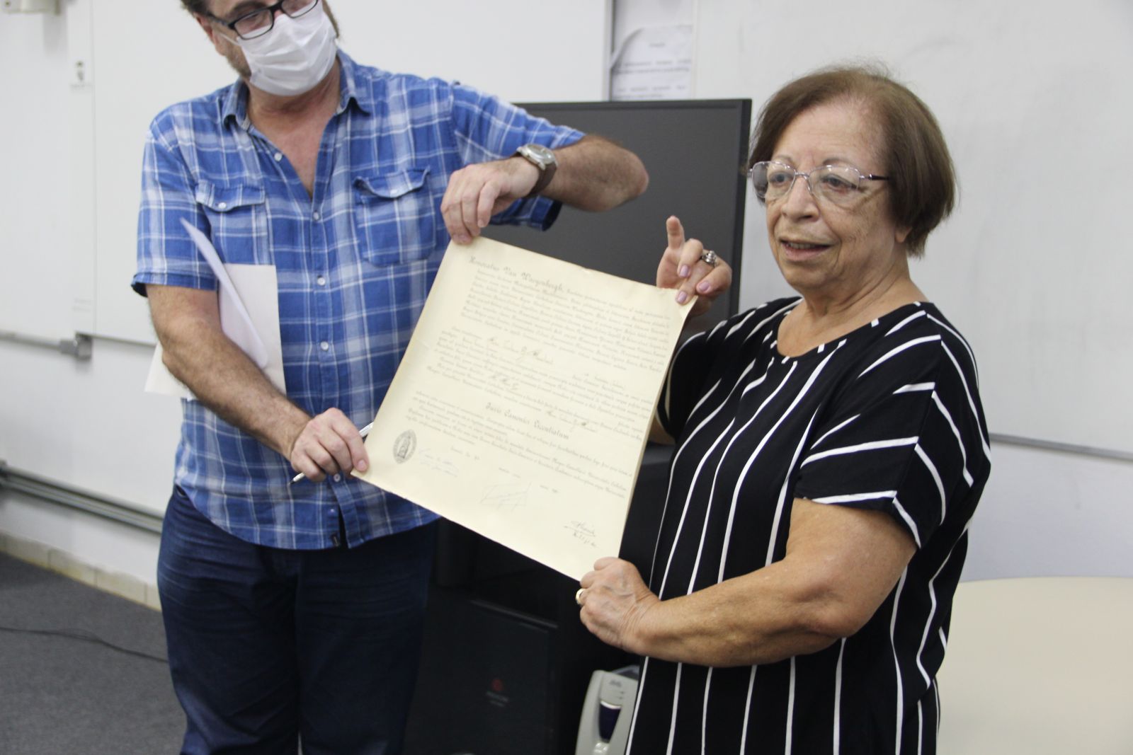 Para celebrar seu centenário, realizou-se, na tarde dessa quarta-feira (24 de novembro), no bloco 4 na Unidade, um evento em sua homenagem. Na ocasião, a família do professor entregou documentos pertencentes a ele para o acervo do Centro de Memória Professora Batistina Corgozinho (Cemud), da UEMG Divinópolis. Entre os arquivos, estavam os certificados de graduação e doutorado, bem como documentos escolares.