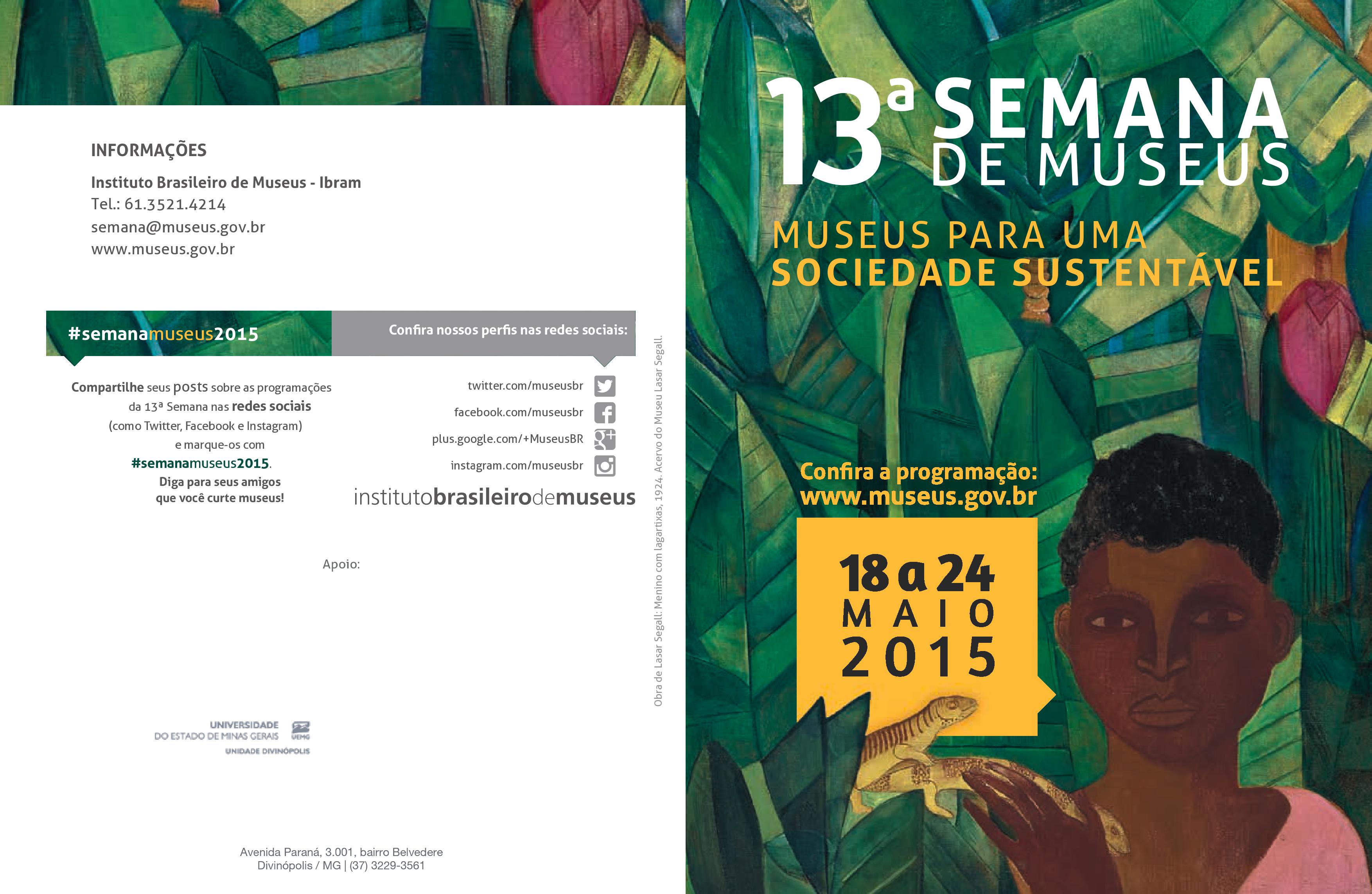 A abertura da Semana será dia 18 de maio às 19h, no auditório da UEMG – Unidade Divinópolis, com o lançamento do Portal da Memória EmRedes e Mesa redonda, com o tema: Memória e Museologia Social.
