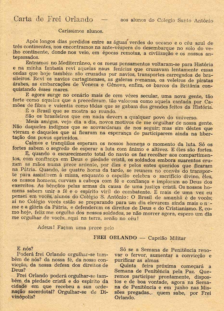 Jornal - A Semana - Informações - Avisos - Artigos - Evangelhos - Comunismo - Socialistas - Comunistas - Frei Orlando - Forças Expedicionárias