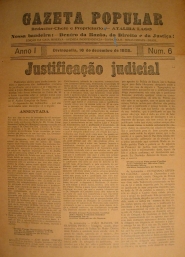 Jornal Gazeta Popular, contém reportagens, notícias, informações, artigos diversos e propagandas - primeira página: "justificação judicial" - depoimento de testemunhas que Ataliba Lago requereu perante o juizo muncipal.