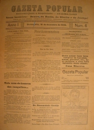 Terceira página do Jornal Gazeta Popular, ano I, número 06, Divinópolis, 16 de dezembro de 1929.