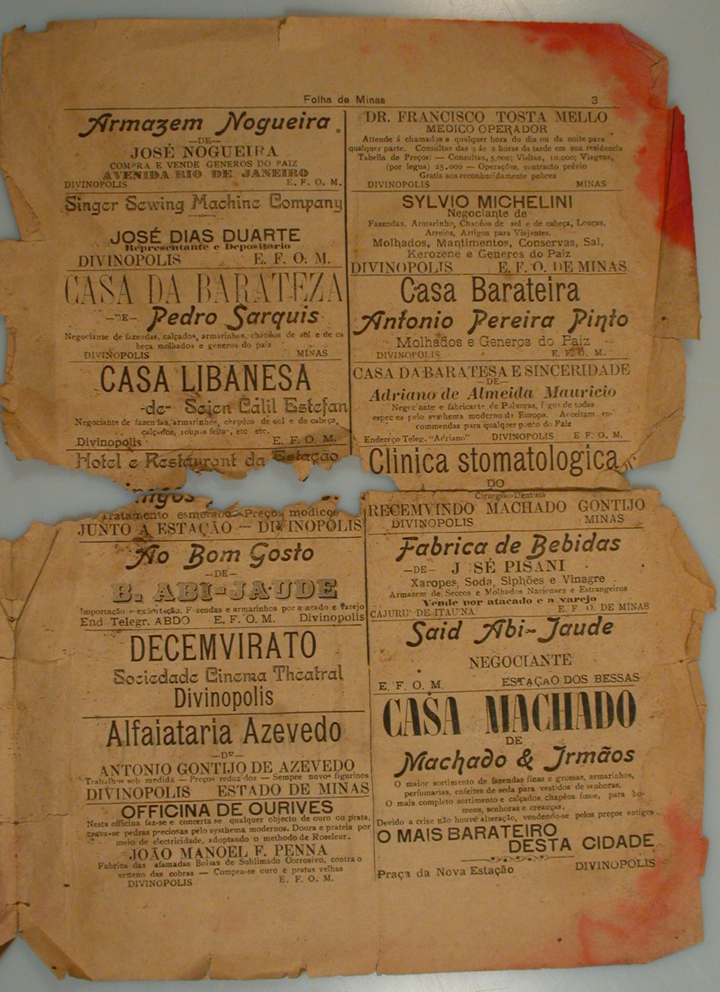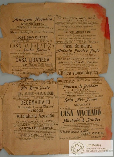 Terceira página do Jornal Folha de Minas, ano 1, número 4. Divinópolis, 19/03/1916.