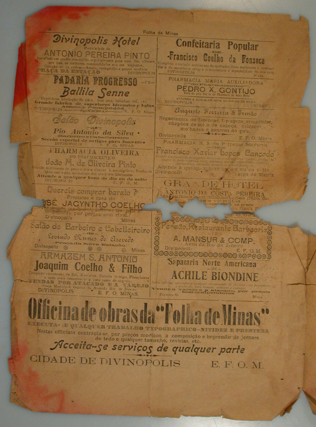 Quarta página do Jornal Folha de Minas, ano 1, número 4. Divinópolis, 19/03/1916.