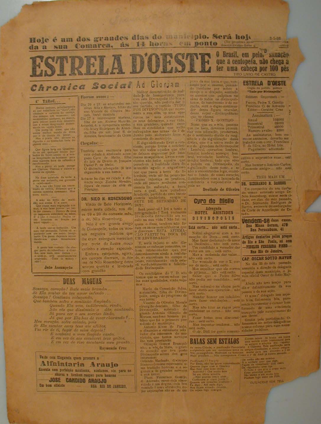 Jornal Estrela d´Oeste, contém reportagens, notícias, informações, propagandas e artigos gerais.