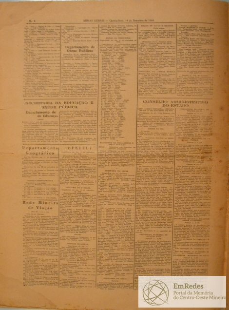 Quarta página do Jornal Minas Geraes, número 215. Belo Horizonte, 14/09/1944.