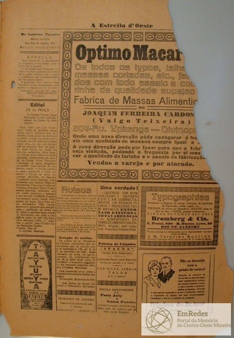 Jornal a Estrella d´Oeste, contém reportagens, notícias, informações, propagandas e artigos gerais. * Primeira página: "o 23º aniversário da Fox-Film Corporation (sic)." - obs: esta edição está bastante danificada em sua lateral.