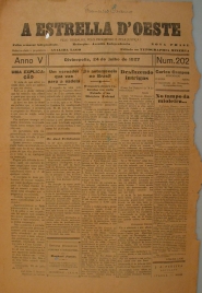 Primeira página do Jornal Estrela d Oeste, ano 5, número 202. Divinópolis, 24/07/1927.