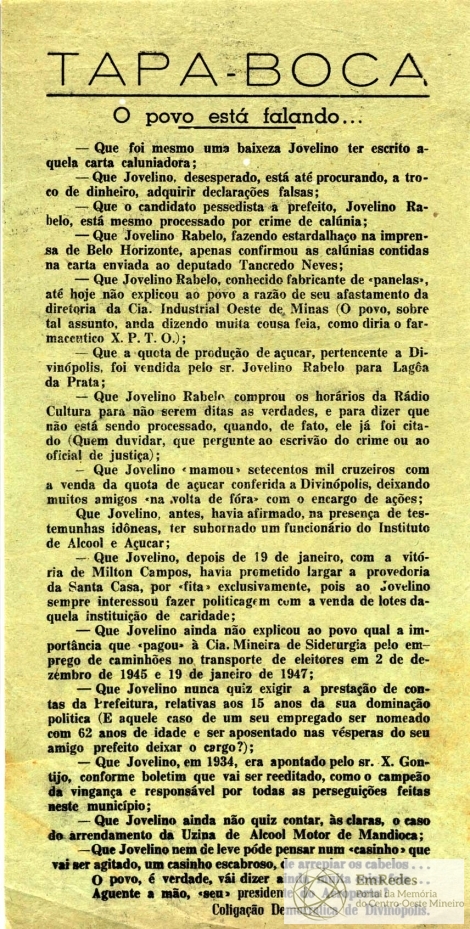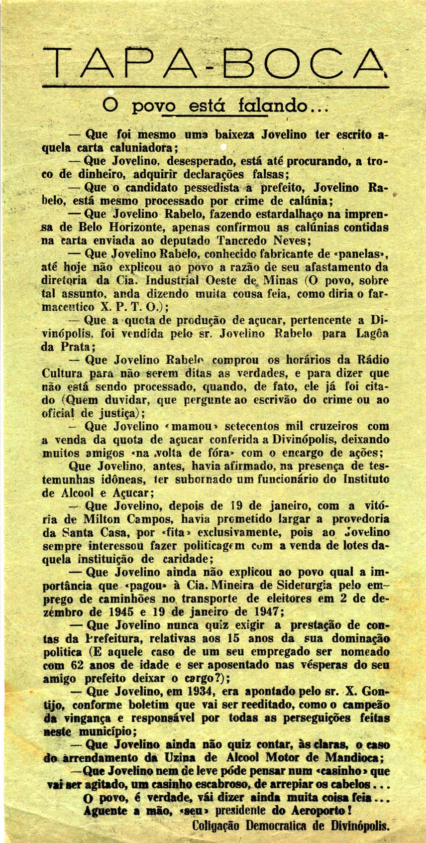BOLETINS E SUPLEMENTOS - TAPA-BOCA - O POVO ESTÁ FALANDO.