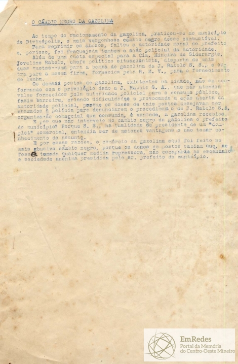 BOLETINS E SUPLEMENTOS - "O CÂMBIO NEGRO DA GAZOLINA(SIC)"