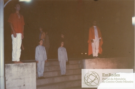 FOTOS D.A. DO INESP - CENTRO ACADÊMICO DO CURSO DE FILOSOFIA - ATIVIDADE CULTURAIS REALIZADOS DURANTE A "SEMANA DE FILOSOFIA" - DE 17 A 21 DE SETEMBRO DE 1996 - PARTICIPAÇÃO DO GRUPO TEATRAL "BAAL" DURANTE O ATO PÚBLICO, APRESENTAÇÃO DO "COCORI-CORAL" SOB REGÊNCIA DO MAESTRO LOPY PETRUS, NA SALA VERDE, NO RECANTO DA PAZ, HOUVE APRESENTAÇÕES DO GRUPO DE DANÇA FLAMENCA E DO GRUPO TEATRAL "OS CÍNICOS", DEMOSNTRAÇÃO DE CONGADO DO GRUPO DA CIDADE DE SÃO SEBASTIÃO DO OESTE, EXPOSIÇÕES DE ARTES PLÁSTICAS DOS ALUNOS QUE ESTÃO CURSANDO O CURSO DE EXTENSÃO DE ARTES DO INESP/ UEMG E SARAU DA FILOSOFIA, COM PARTICIPAÇÃO ESPECIAL DO GRUPO TEATRAL DA FAFICH / UFMG, DA BANDA DE REGGAE E POP-ROCK UFUTHA E 1ª EXIBIÇÃO DO "FILOGAY".