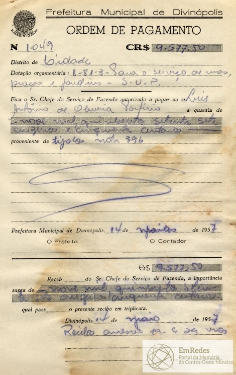 PREFEITURA MUNICIPAL DE DIVINÓPOLIS, 14 DE MAIO DE 1957