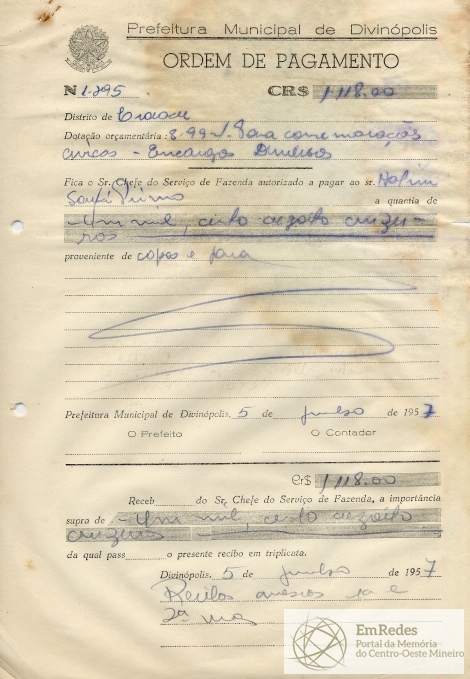 PREFEITURA MUNICIPAL DE DIVINÓPOLIS, 05 DE JUNHO DE 1957.
