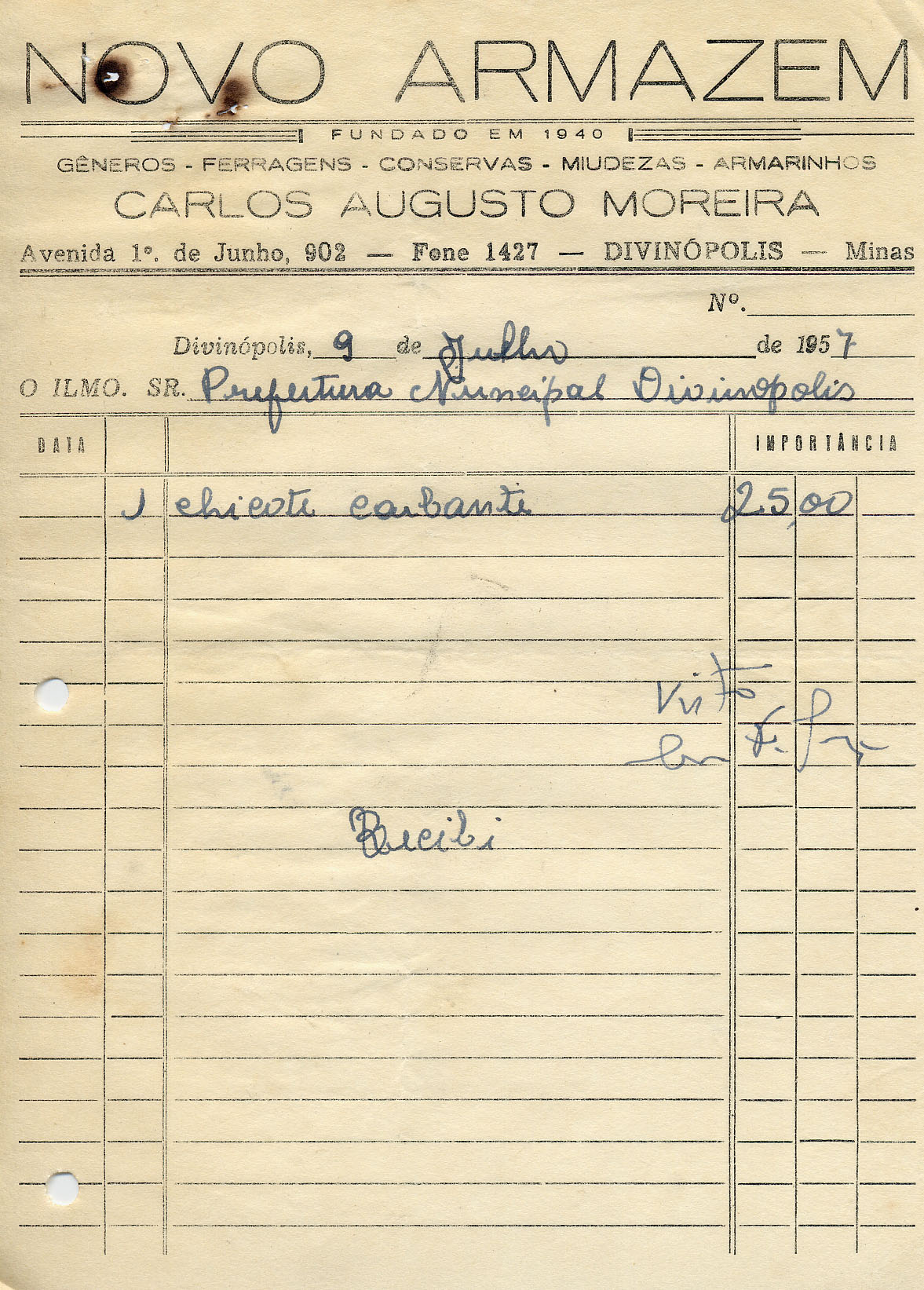 PREFEITURA MUNICIPAL DE DIVINÓPOLIS, 19 DE JULHO DE 1957