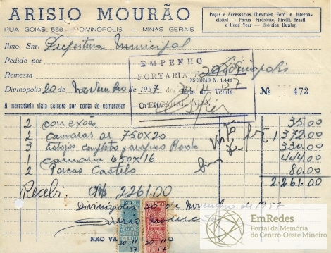 PREFEITURA MUNICIPAL DE DIVINÓPOLIS, 20 DE NOVEMBRO DE 1957.