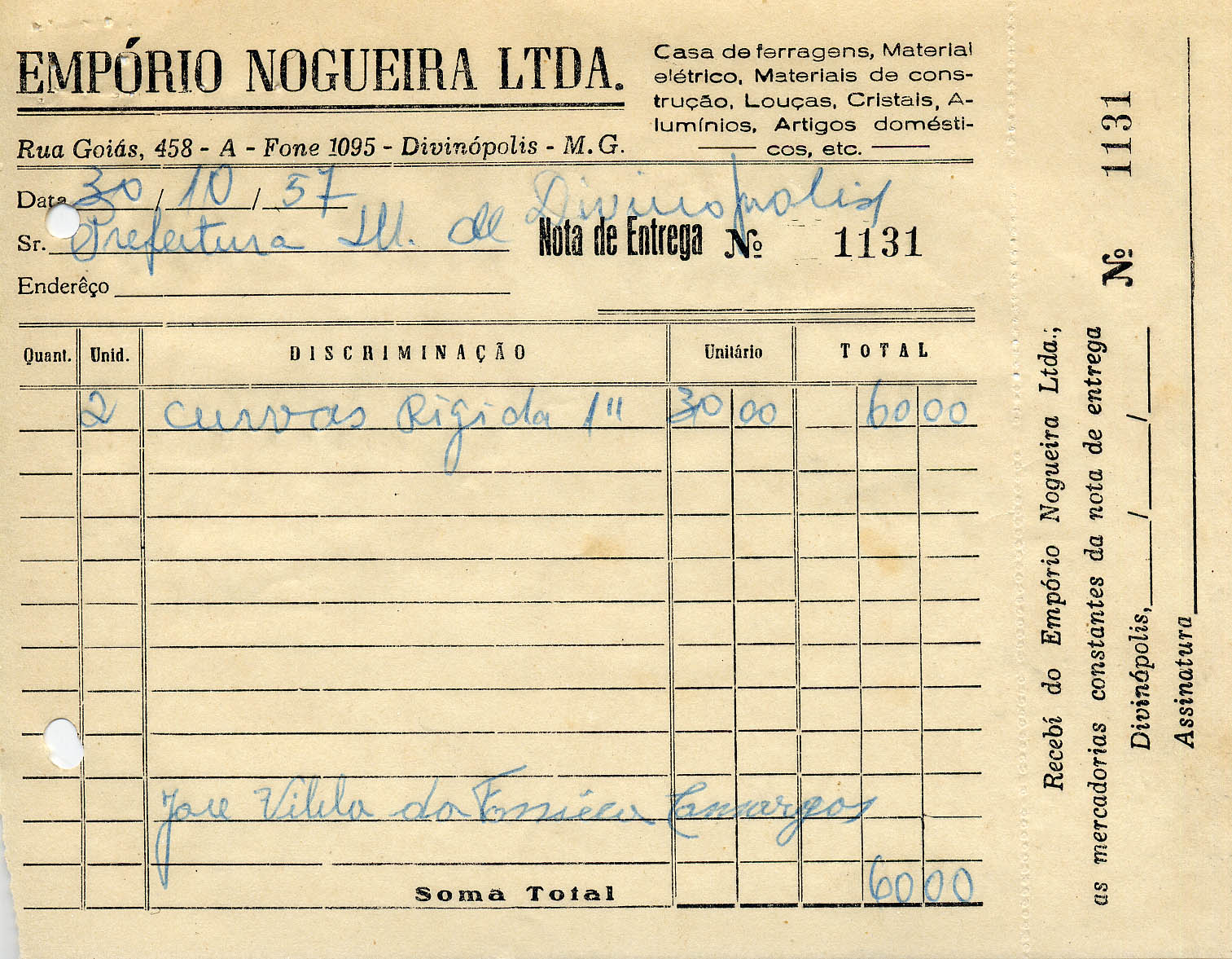 PREFEITURA MUNICIPAL DE DIVINÓPOLIS, 25 DE NOVEMBRO DE 1957.
