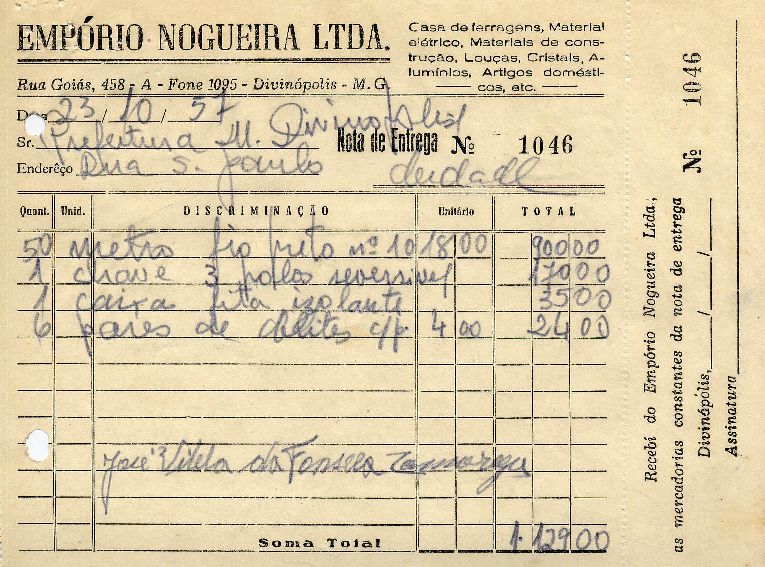 PREFEITURA MUNICIPAL DE DIVINÓPOLIS, 25 DE NOVEMBRO DE 1957.