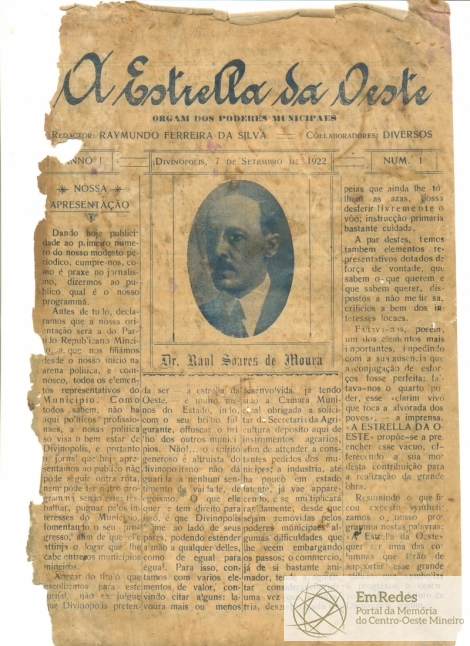 Jornal - A Estrella do Oeste - Carta da apresentação - Dr. Raul Soares de Moura - Olegário Maciel - Termo de Divinópolis - Conde d´Eu - Higiene - Saúde Publica - Mendigos - Crianças - Eleitorado - Vagabundagem - Propagandas - A Estrella da Oeste - Estrella D Oeste