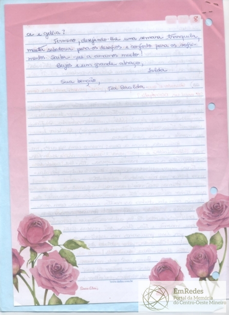 Última parte da Carta manuscrita enviada para a "prima Laurinda", enviada por Irilda, do Rio de Janeiro com a data de 05 de julho de 2010, o texto fala sobre uma conversa amistosa entre os interlocutores, na qual se fala sobre a mãe e de Laurinda e ela responde algumas perguntas.