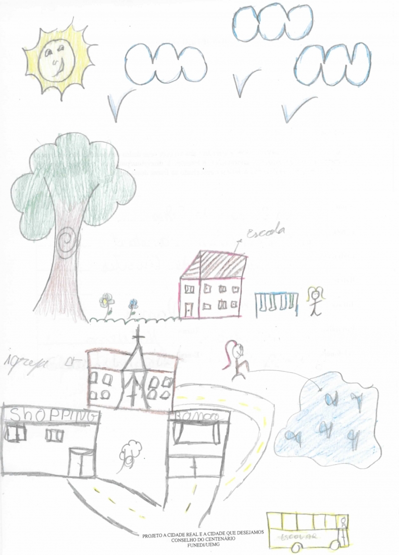 Desenhos dos adolescentes e jovens a respeito das suas representações sobre a cidade desejada.