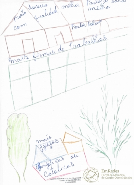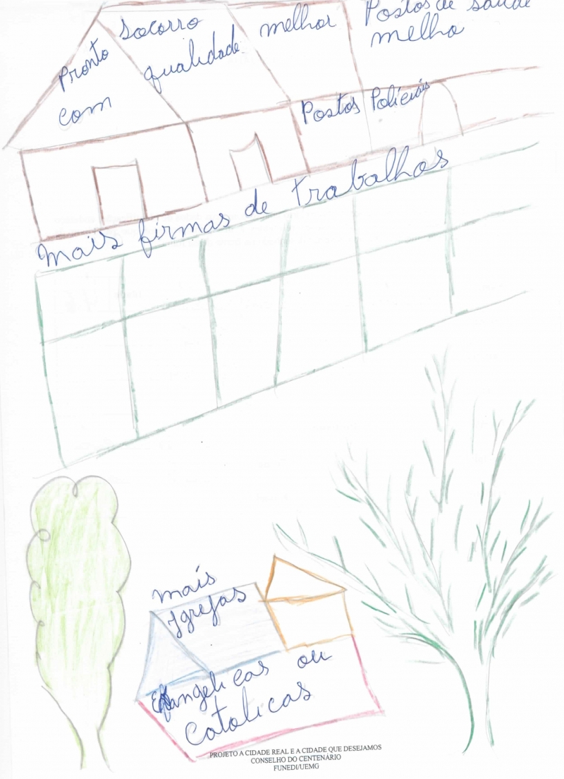 Desenhos dos adolescentes e jovens a respeito das suas representações sobre a cidade desejada.
