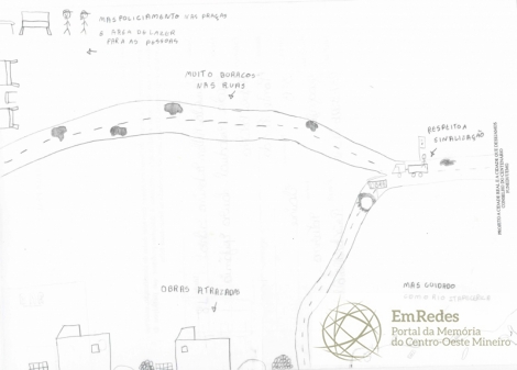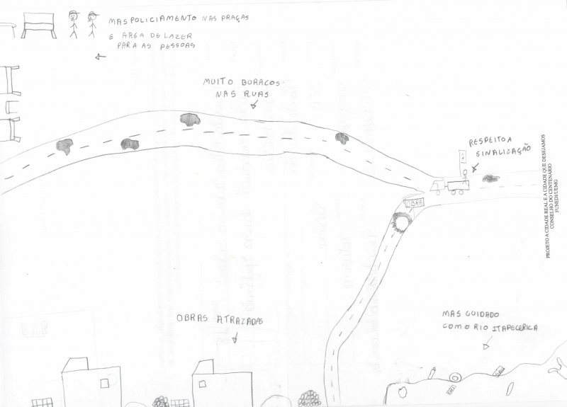 Desenhos dos adolescentes e jovens a respeito das suas representações sobre a cidade real.