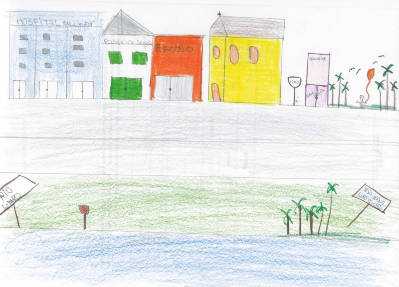Nome do aluno: Jéssica Pereira Gonçalves - 1° ano, turma A – Professora: Cristiane - Categorias: Meio ambiente, Rio Itapecerica, Comércio, Espaço urbano, Equipamentos urbanos, Festividades, Poluição, Saúde e assistência social, Lazer, Educação.