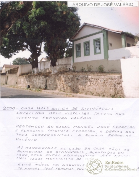 Casa mais antiga de Divinópolis, que pertenceu ao Sr. Manoel José Ferreira (Manoel Bigode), avô de José Valério.