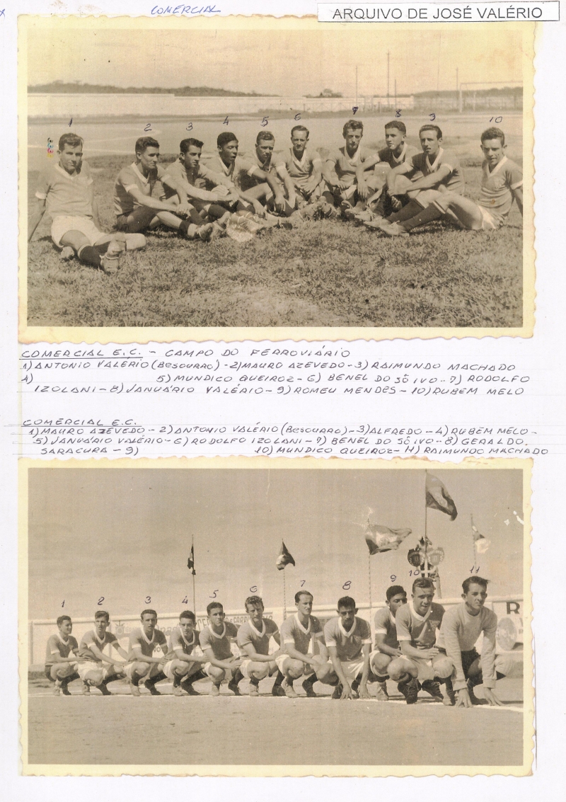 Jogadores do time Comercial Esporte Clube no gramado do campo do Clube Ferroviário.