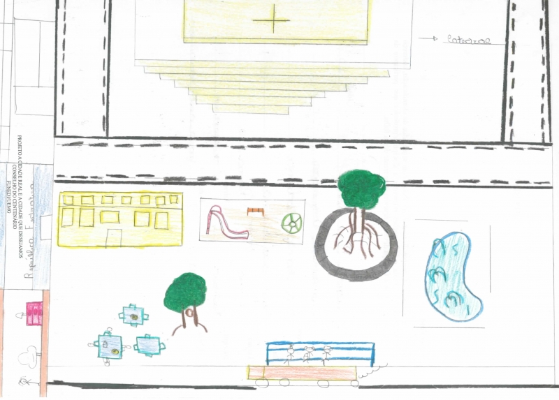 Desenhos dos adolescentes e jovens a respeito das suas representações sobre a cidade real.