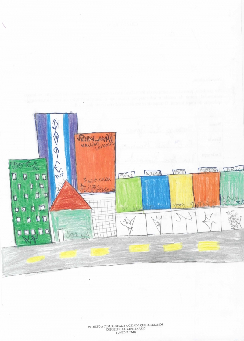 Desenhos dos adolescentes e jovens a respeito das suas representações sobre a cidade real.
