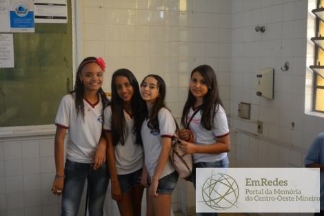 A imagem mostra a visita dos alunos da Escola Estadual Professor Chico Dias à exposição Mineiridades, de Luan Marvin, durante a 4ª Semana da UEMG.