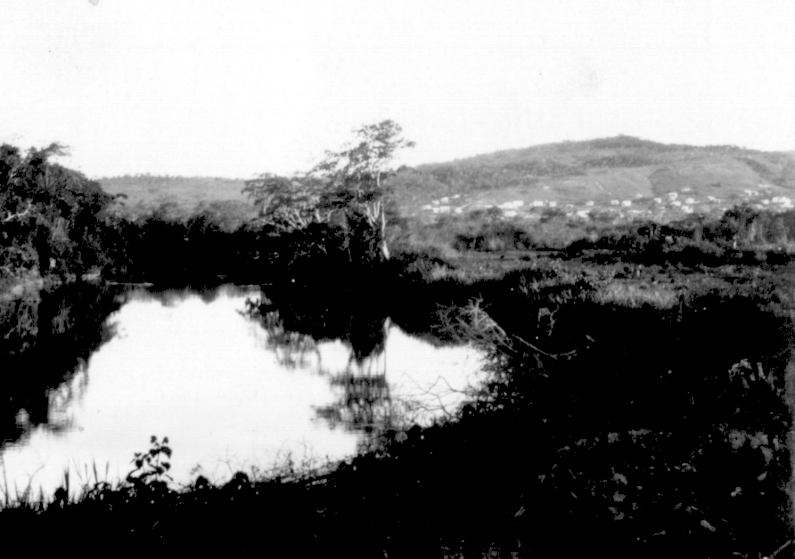 Vista do rio Itapecerica a partir da plataforma da Usina de Álcool Motor, na década de 1930. Autoria de Halim Souki.
