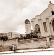 Vista da Igreja Batista de Divinópolis a partir da Avenida Independência (atual Avenida Antônio Olímpio de Morais), década de 1950. Autoria de Omar Souki. Mesmo terreno que, em meados da década de 80 foi construído o Condomínio do Edifício Costa Rangel. Ao fundo, observa-se o Santuário de Santo Antônio. Esta foi a primeira foto tirada após o falecimento de Halim Souki, por seu filho, Omar Souki.