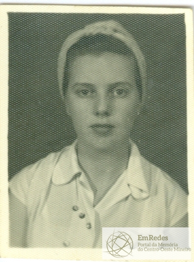 Sem anotações. Fotografia em preto e branco de uma jovem garota (3x4), ela está com os cabeços presos com um lenço.