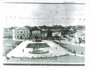 Fotografia retirada da praça da estação de Divinópolis entre os anos de 1940 e 1941. Na imagem em questão José Valério numerou alguns pontos de destaque da cidade. O primeiro refere-se ao Grande Hotel, e logo abaixo, o Hotel Machado. Ele aponta também, o caminho que cortava em diagonal o pastinho do Alonso Epifânio, ligando à estação a Avenida 1° de junho.