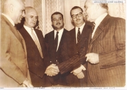 Fotografia com os representantes políticos do estado de Minas Gerais no Palácio da Liberdade em Belo Horizonte, a qual destaca o senhor Jovelino Rabelo, prefeito de Divinópolis e o Governador Bias Forte.