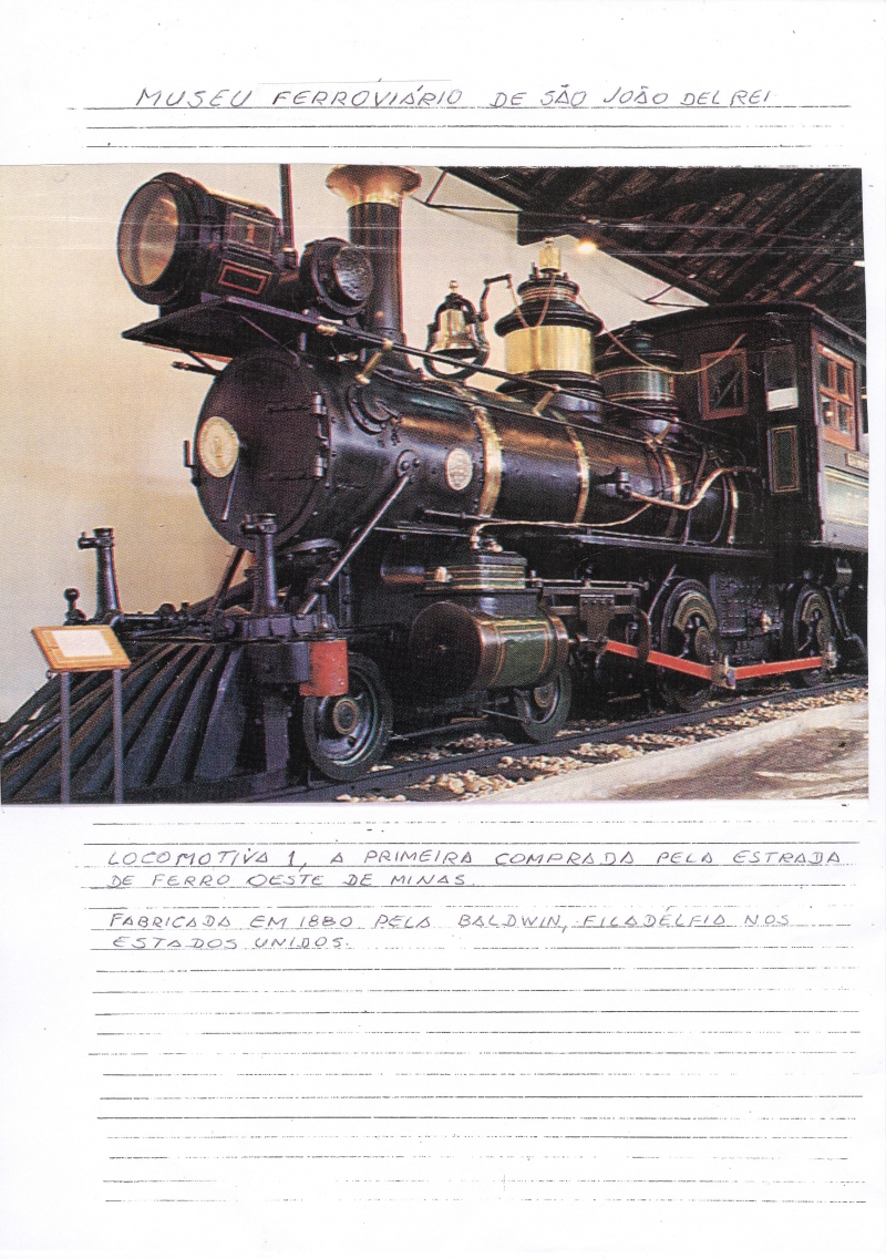 Nomes citados: Museu Ferroviário de São João Del Rei, Estrada de Ferro Oeste de Minas, Baldwin, Filadélfia, Estados Unidos.