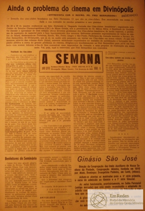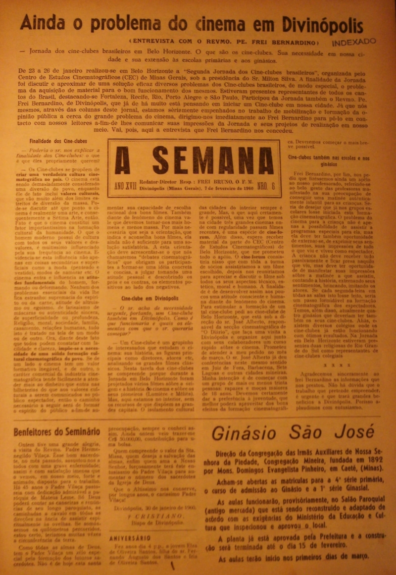 - Ainda o problema do cinema em Divinópolis. (Entrevista com o Frei Bernadino)