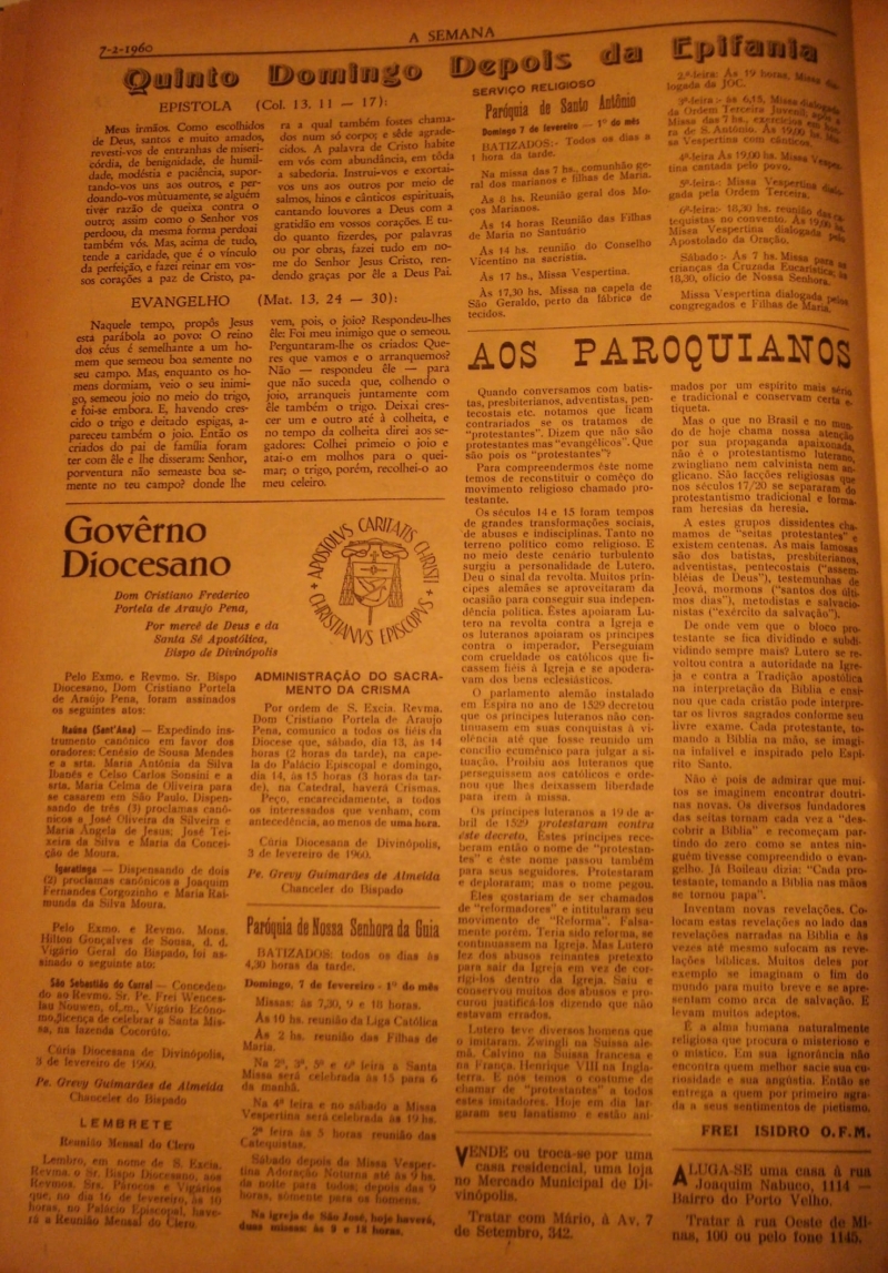 EDIÇÃO N°6. 7 DE FEVEREIRO DE 1960.REDATOR:FREI BRUNO