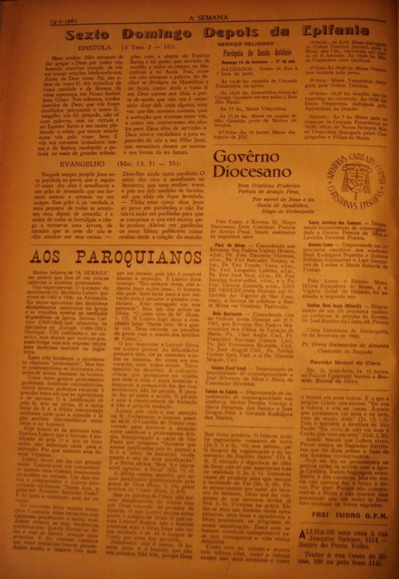 EDIÇÃO N°7. 14 DE FEVEREIRO DE 1960 REDATOR:FREI BRUNO