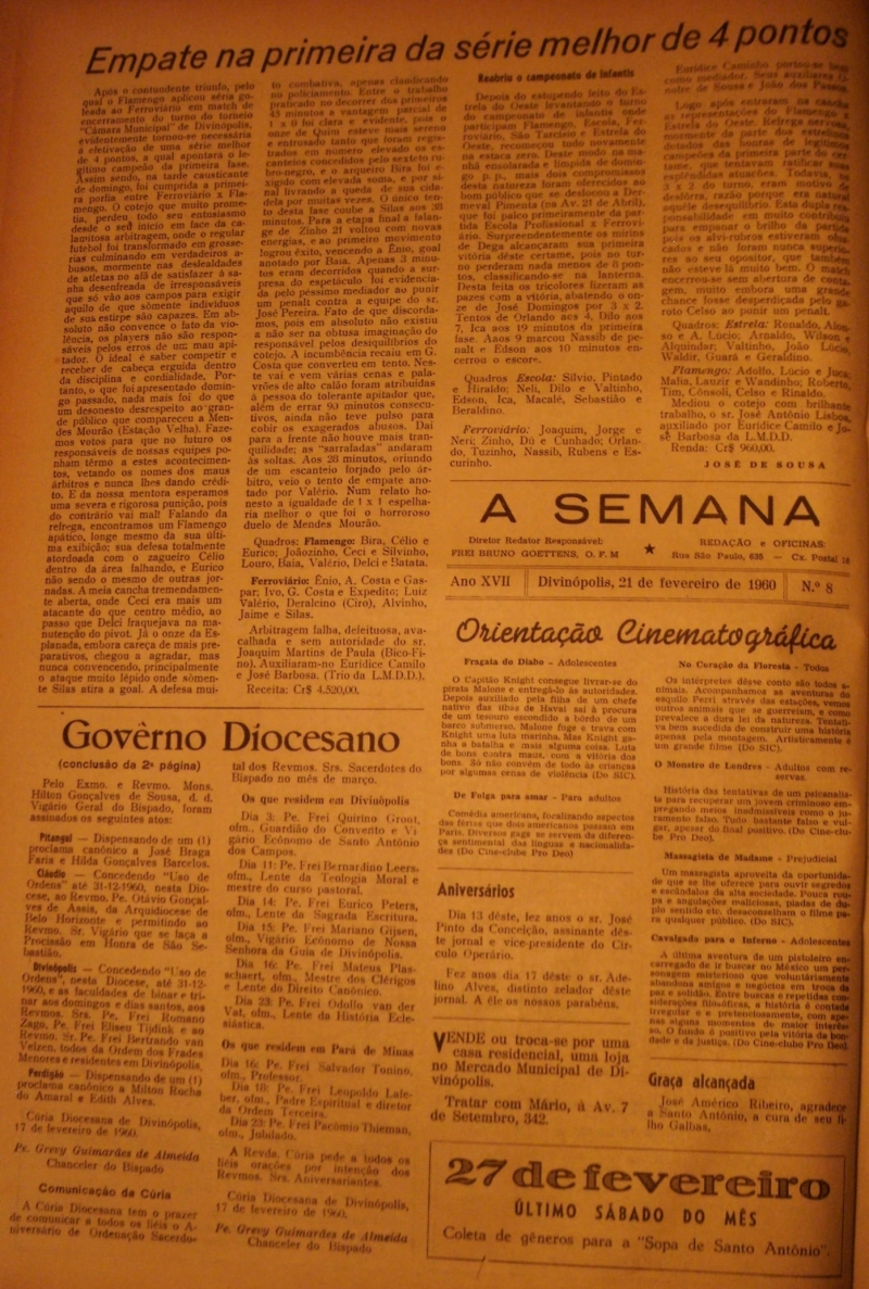 - EDIÇÃO N°8. 21 DE FEVEREIRO DE 1960 - REDATOR RESPONSÁVEL:FREI PASCOAL