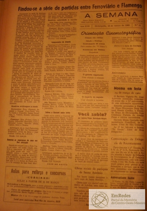Sõa José - Meteorologia - Quaresma - Governo Diocesano Datilografia - Delegacia de recrutamento - Obras Sociais