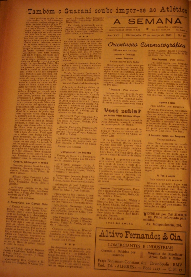 EDIÇÃO N°13.27 DE MARÇO DE 1960.REDATOR:FREI PASCOAL