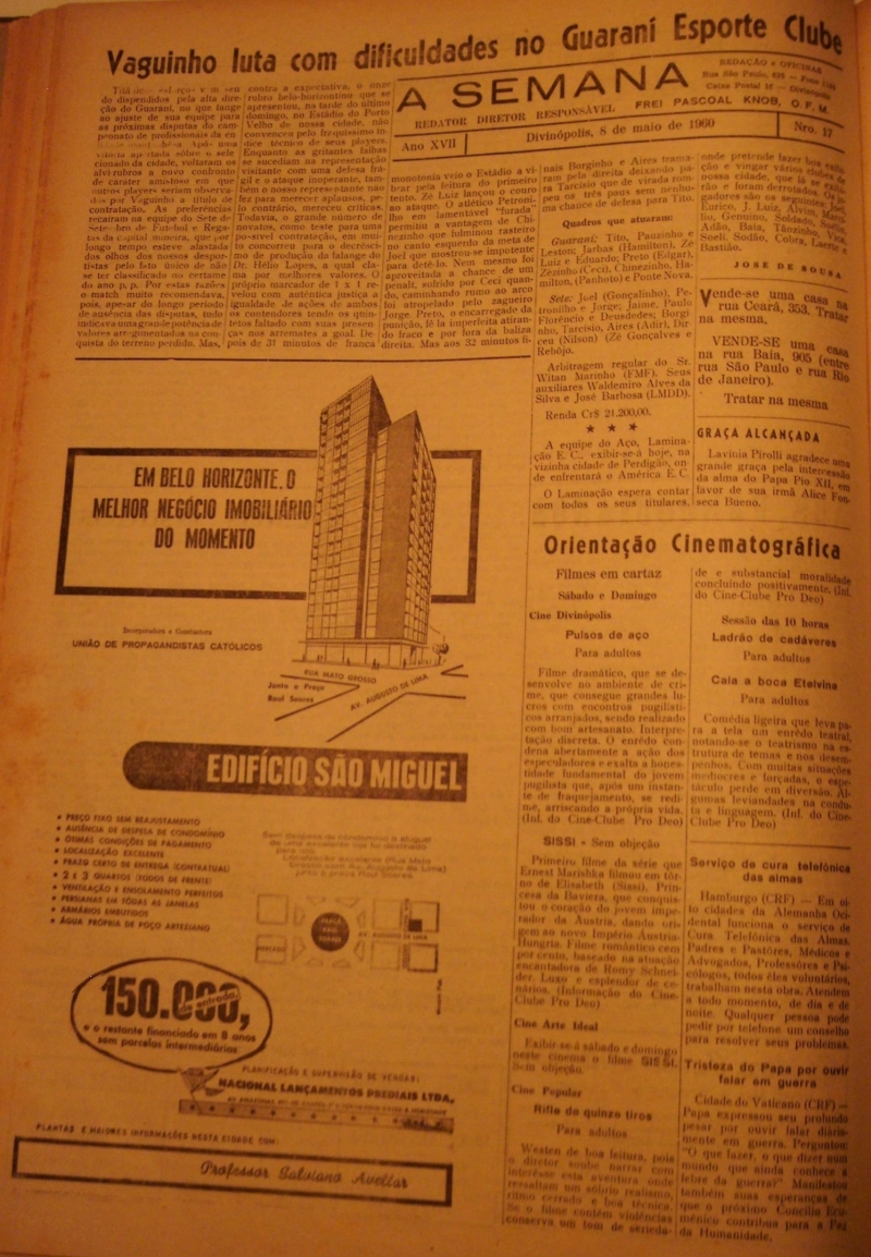 - Como foi comemorado o primeiro de Maio em Divinópolis. Pág 1