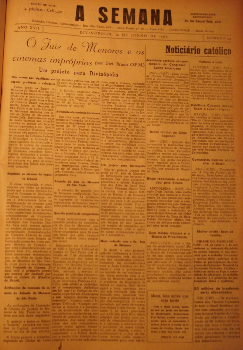 - O juiz de menores e os cinemas impróprios.( por Frei Bruno.) Pág 1