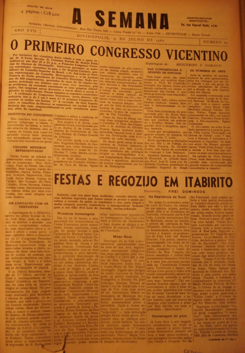 EDIÇÃO N° 30.7 DE AGOSTO DE 1960 REDATOR: FREI PASCOAL.