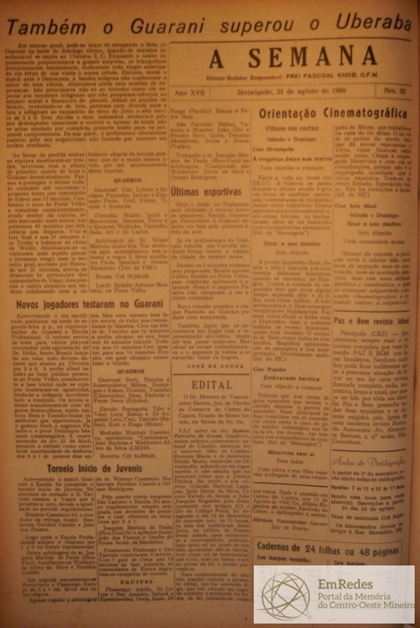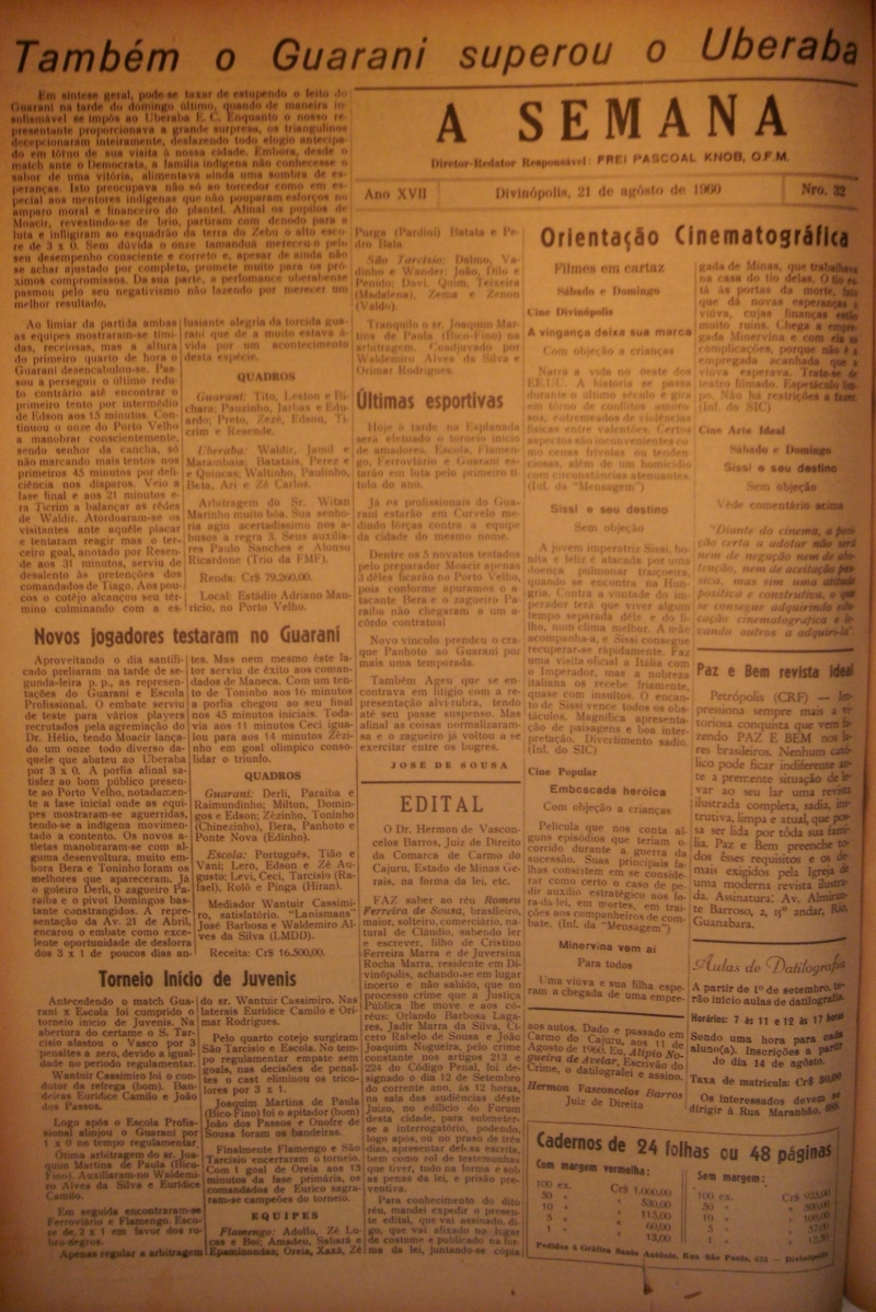 - EDIÇÃO N° 32. 21 DE AGOSTO DE 1960. REDATOR:FREI PASCOAL.