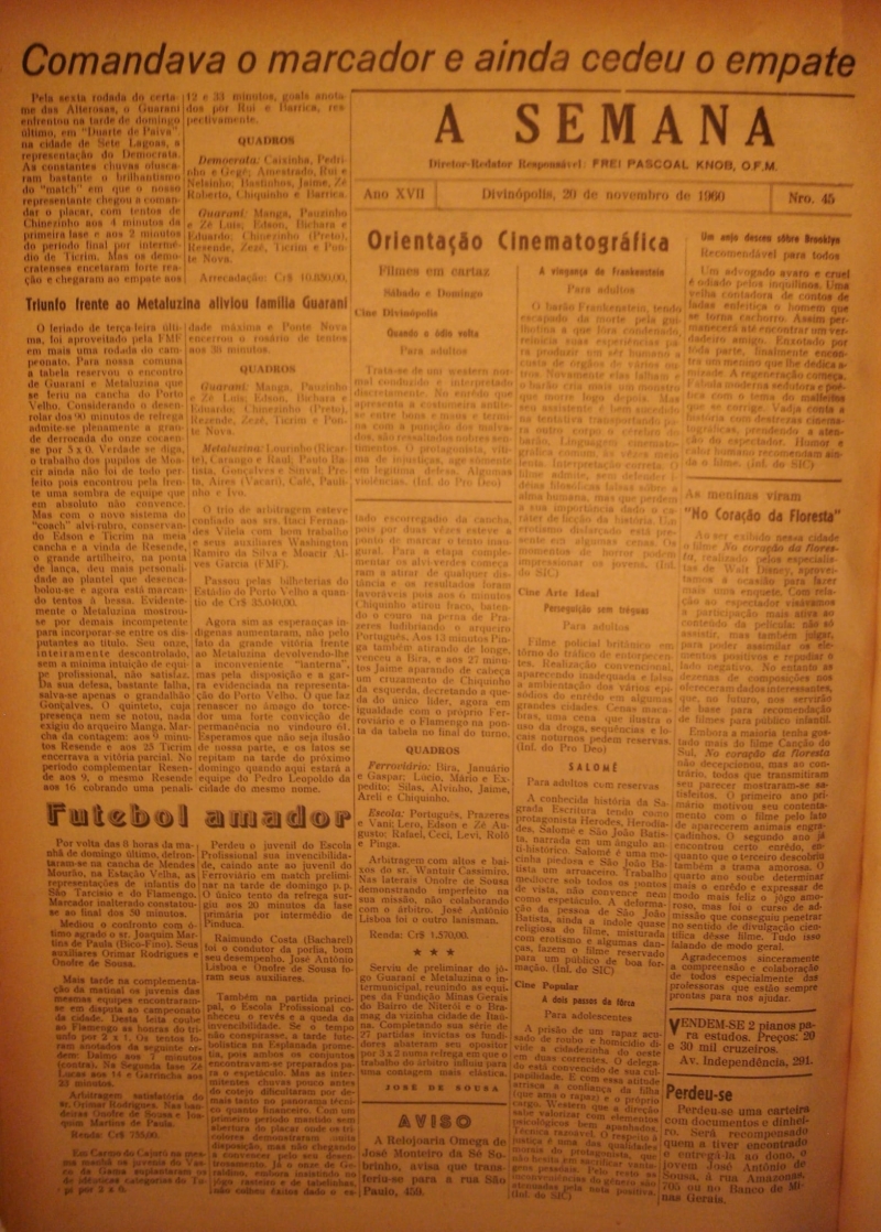 -EDIÇÃO N° 45.20 DE NOVEMBRO DE 1960. REDATOR: FREI PASCOAL.