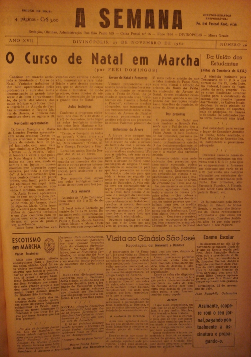 - EDIÇÃO N° 46. 27 DE NOVEMBRO DE 1960. REDATOR FREI PASCOAL.