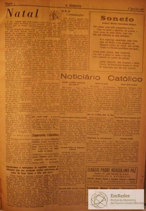 - EDIÇÃO N° 1. 1° DE JANEIRO DE 1961. REDATOR FREI PASCOAL.